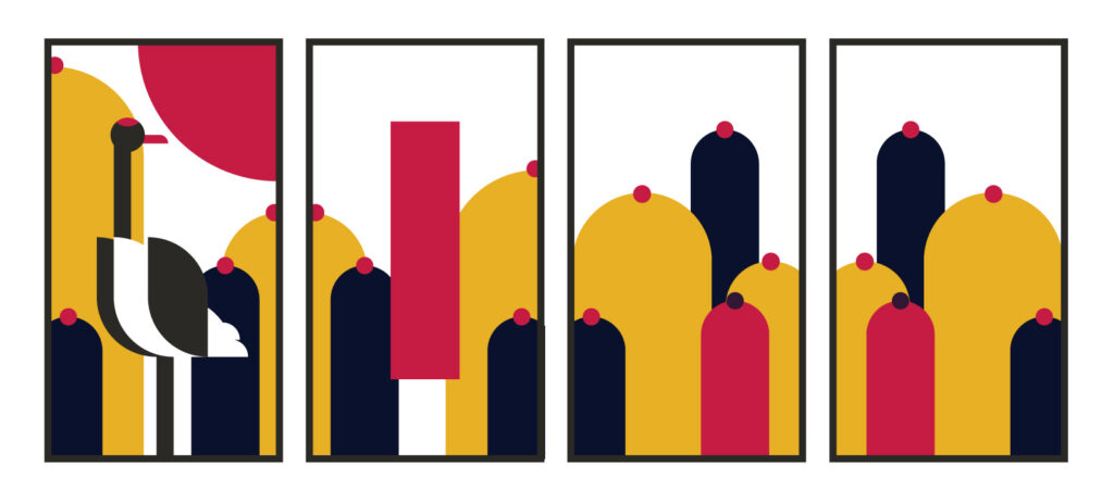 この配色では、「祝う色」「光を添える色」「引き締める色」を組み合わせることで、